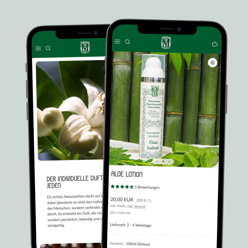For over 40 years, Maienfelser Naturkosmetik has stood for handmade, sustainable cosmetic products. To optimally convey these values and high quality standards digitally, the brand needed a modern e-commerce solution.