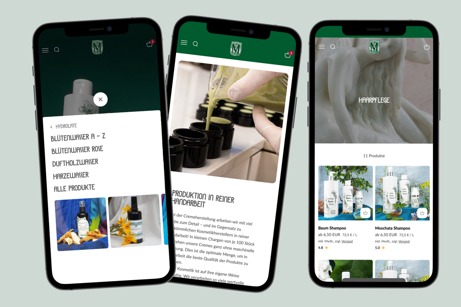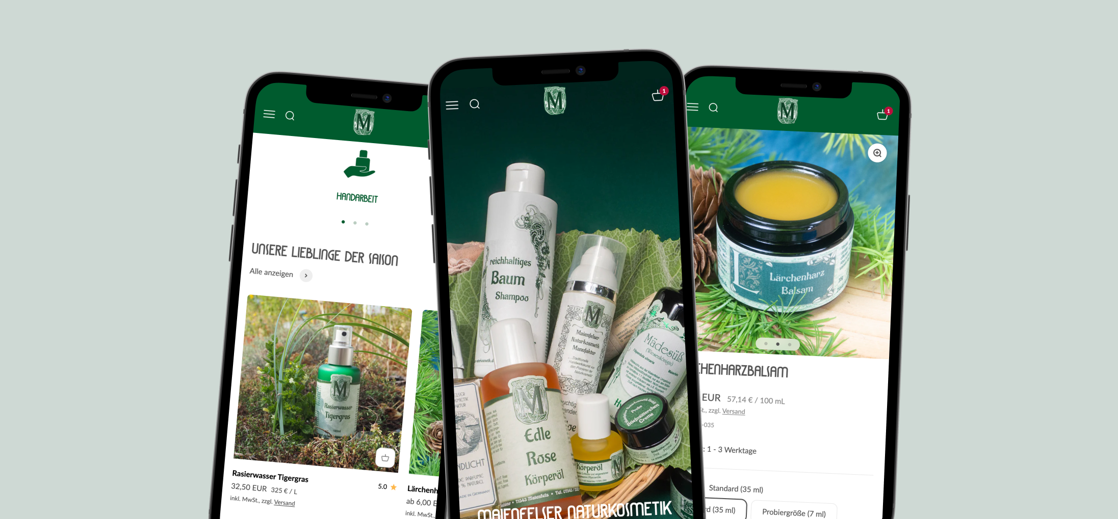 With a structured Shopify setup, Maienfelser Naturkosmetik showcases its high-quality products in a legally compliant and user-friendly manner.